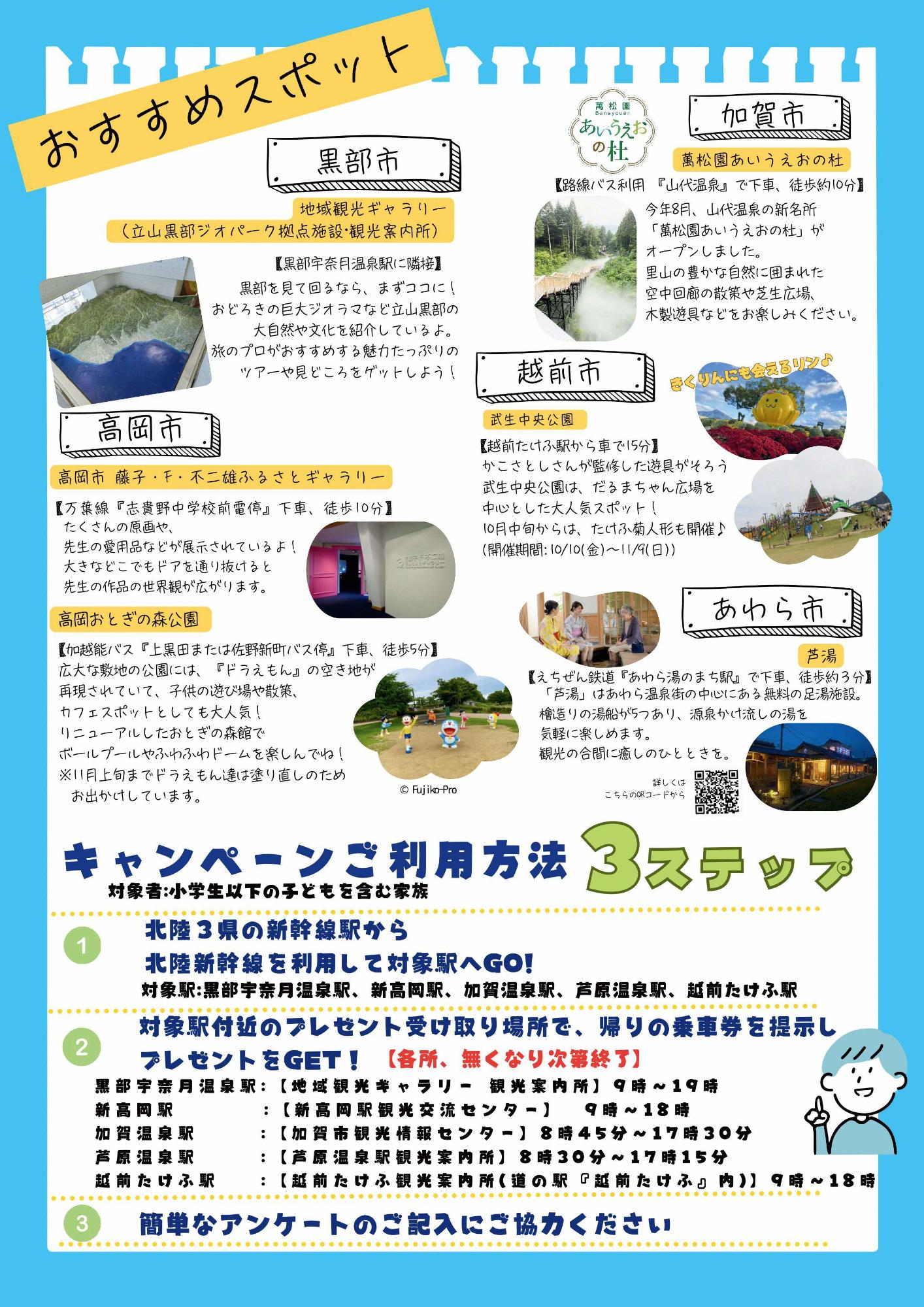 (対象駅:黒部宇奈月温泉駅、新高岡駅、加賀温泉駅、芦原温泉駅、越前たけふ駅)
