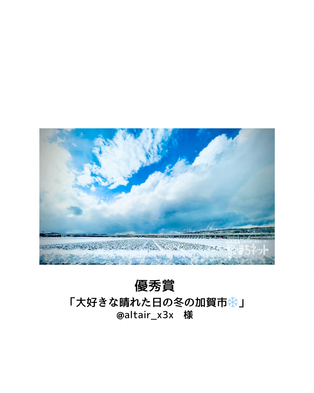 2025年12月1日から2026年1月31日までの期間で実施しました「加賀温泉郷インスタグラム冬のフォトコンテスト」へのご応募ありがとうございました。