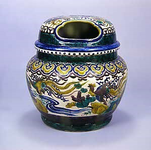 吉田屋窯 ・網目文水注 絵替木瓜形向付10客 ・花鳥図片口 ・菊文蔦図瓢形徳利 ・莢豆図甲鉢 三夕詩入鉦鉢 ・杓立 魚に草花尽図大甕 竹林七賢人図瓢形徳利 ・梅花図燭台 (三具足の内) 鳳凰図手炉 ・牡丹図平鉢 ・牡丹に流水文孔雀図額鉢 ・牡丹文仙盞瓶 ・耳付梅花図花入 ・木瓜絞付香炉(三具足の内) 百合図平鉢 龍宮図平鉢 楼閣山水図平鉢 六歌仙図額鉢 この記事に関するお問い合わせ先 石川県九谷焼美術館電話番号:0761-72-7466メールフォームによるお問い合わせ