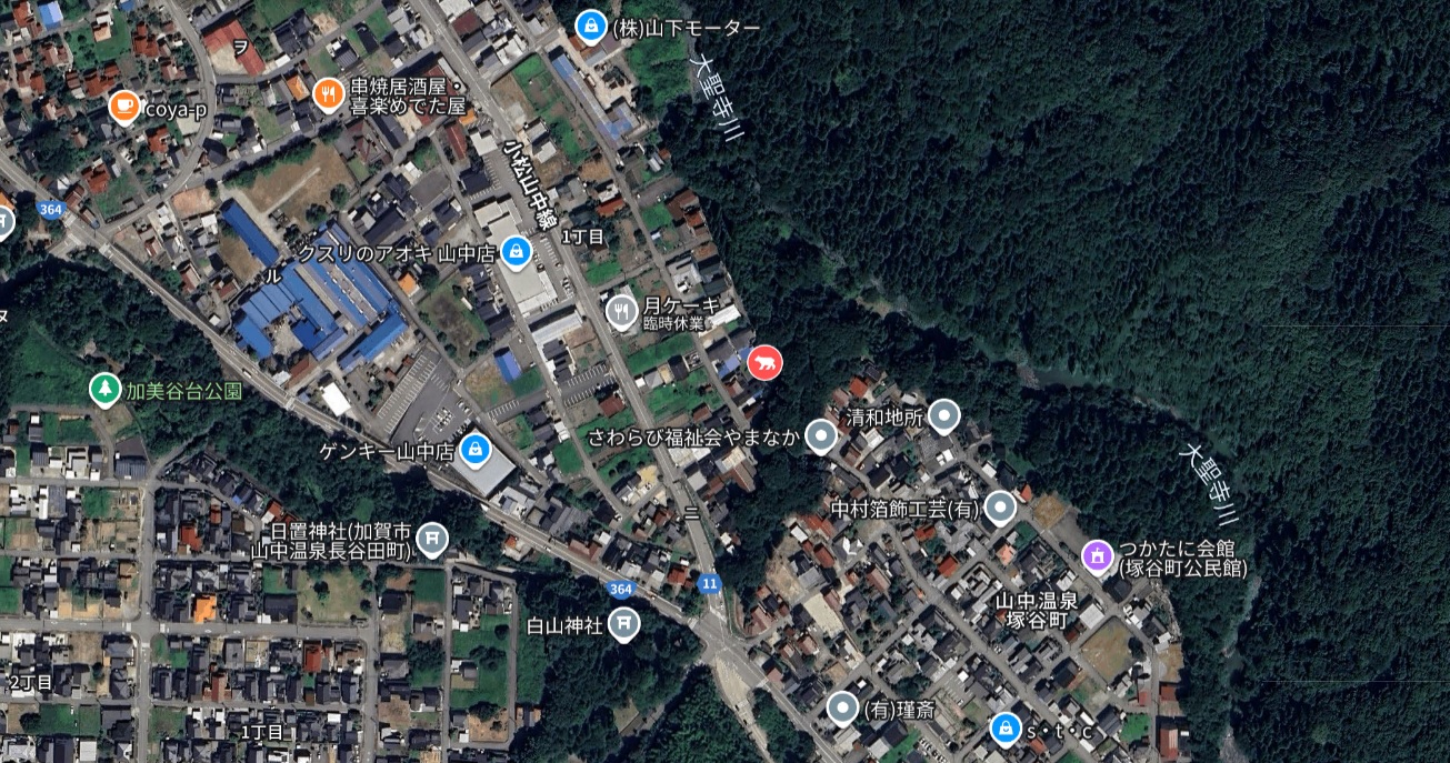 ・5月23日(金曜)17:00頃 山代温泉地内(子グマ1頭 北方向へ移動)