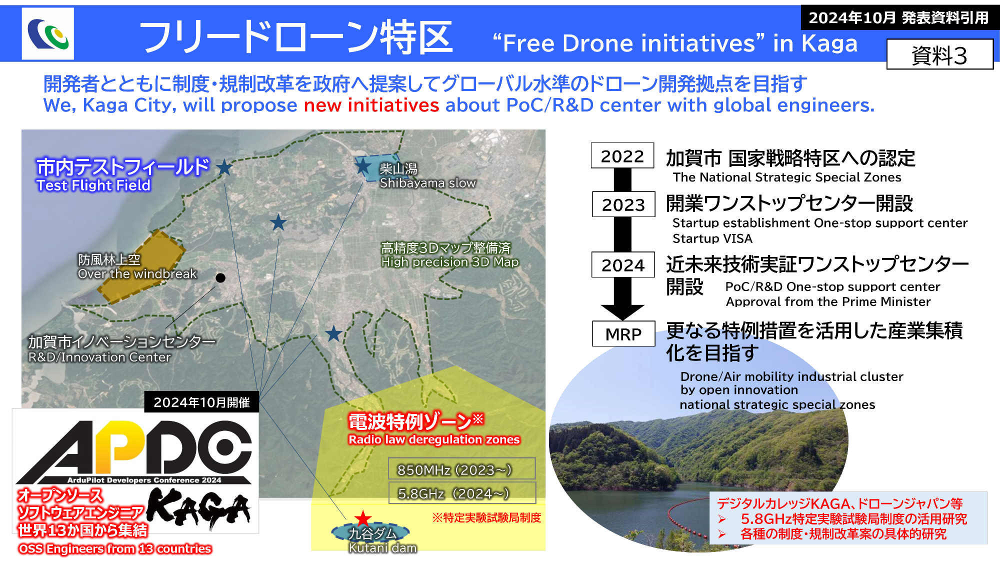(1)フリードローン特区:開発者とともに規制・制度改革を国へ提案し、グローバル水準のドローン開発拠点を目指すもの。