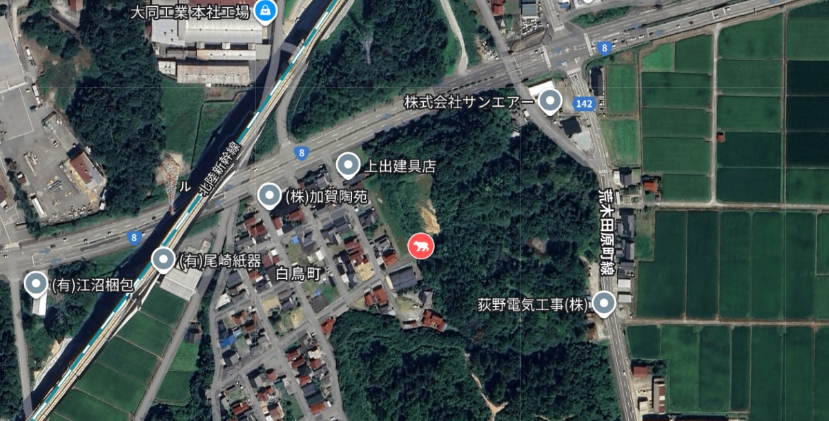 ・8月10日(日曜)午前7:20頃 加賀市黒瀬町地内(成獣1頭 西方向へ移動)