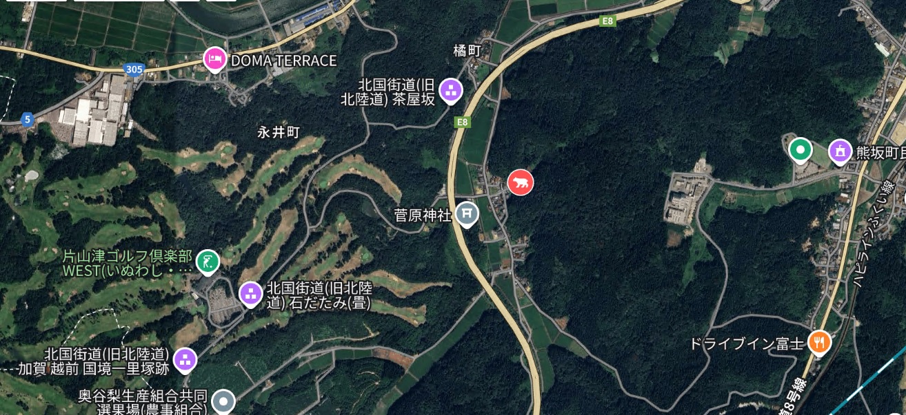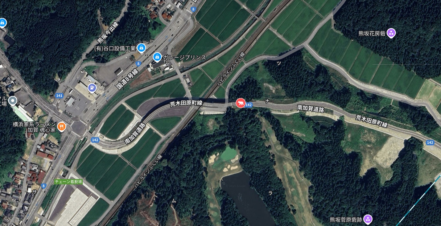 ・8月15日(金曜)午前1:30頃 加賀市細坪町地内(成獣1頭 南方向へ移動)