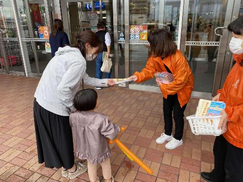 街頭キャンペーンとして、啓発グッズ(啓発チラシ・ウェットティッシュ) を来店者、来場者に配布します。